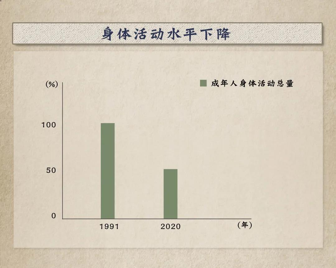 中國居民總身體活動量與心血管病死亡呈顯著負關(guān)聯(lián)。1991年至目前,成年人身體活動總量下降近一半。